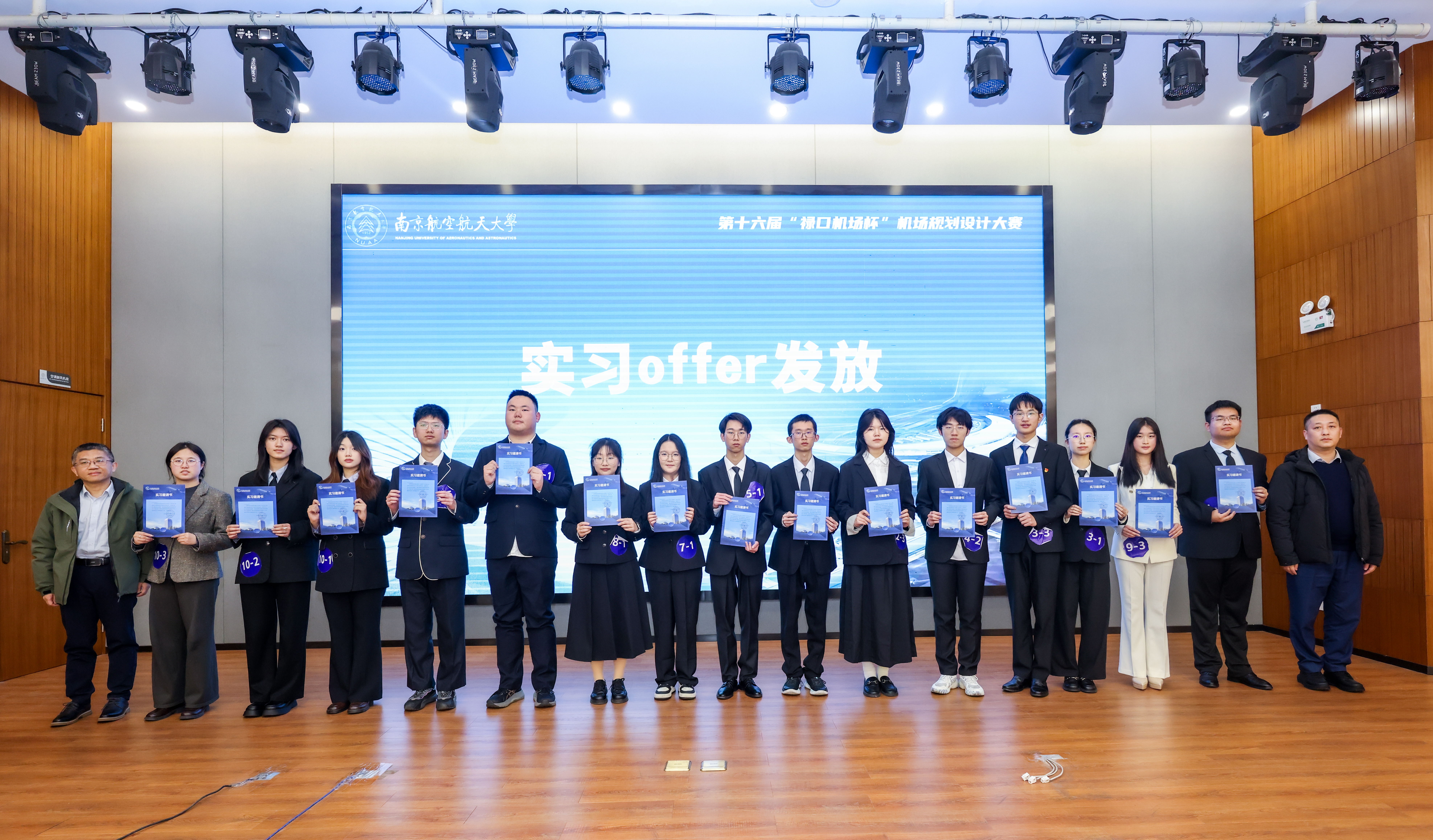决赛中,10支队伍围绕“平安、绿色、智慧、人文”的“四型机场”理念展开精彩答辩。各团队紧密围绕国家区域发展战略,在枢纽定位、容量预测、多方联运等核心环节,提出了工程逻辑严谨的解决方案,论证过程数据支撑充分,设计方案周密详实,全面展现了我校学子的专业功底和创新热情。最终,大赛评选出特等奖1项、一等奖2项、二等奖3项、三等奖4项,东部机场集团有限公司现场向15名优秀学子颁发了实习录用意向书。