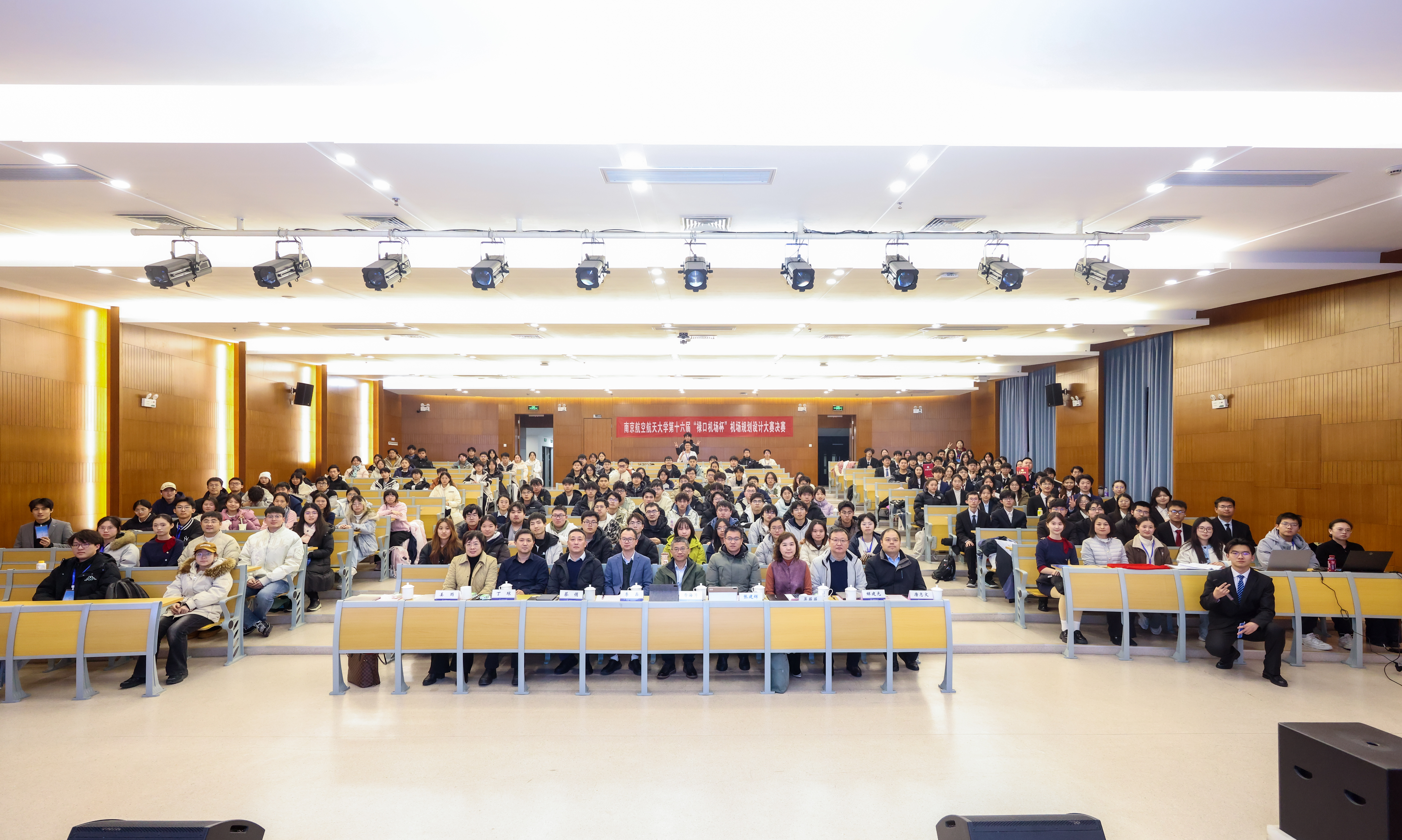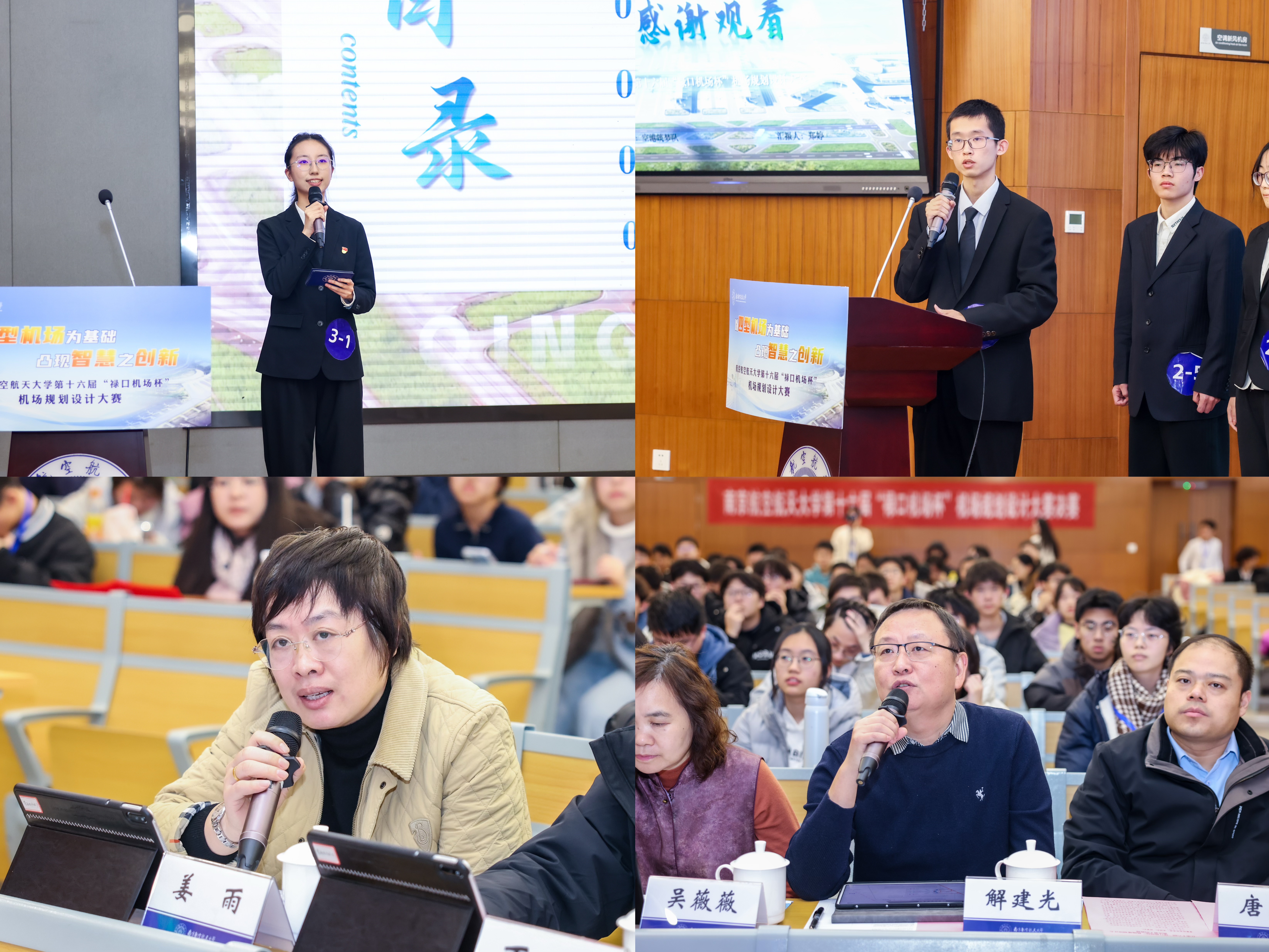 1月9日,南京航空航天大学第十六届“禄口机场杯”机场规划设计大赛决赛在天目湖校区成功举行。大赛由校教务部、校团委主办,民航学院与牧星学院致慧书院联合承办,东部机场集团有限公司副总工程师、南京禄口国际机场党委副书记、副总经理费海涛,东部机场集团有限公司党委组织部(人力资源部)副部长蔡俏,校教务处副处长李鑫,校党委学生工作部副部长、学生工作处副处长张建辉,校团委副书记芮康康,民航学院副院长吴薇薇,牧星学院党委副书记兼致慧书院执行院长丁琛,民航学院院长助理、土木与机场工程系教授解建光,民航学院交通运输系教授姜雨出席本次活动并担任评委。活动吸引了300余名学生现场观摩。