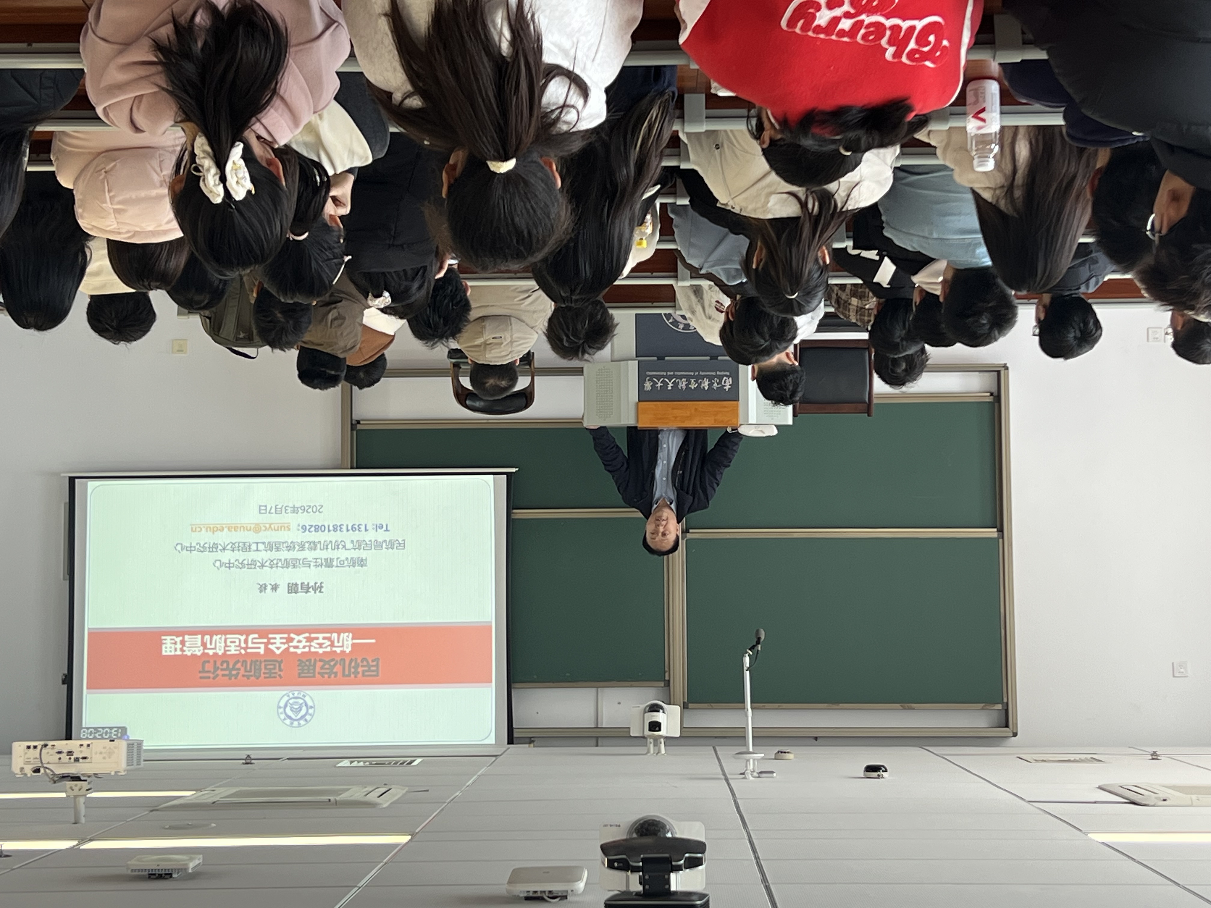 本场讲座聚焦行业前沿,从不同维度为民航发展描绘出立体图景,为天目湖学子打开通往民航世界的知识大门。胡明华以《守天路、拓低空、向未来——空管专业学生成长与发展》为题,深度剖析空管、签派专业的发展前景,指出无论是在传统民航领域、未来深造路径,还是蓬勃兴起的低空经济领域,都拥有广阔的发展空间。吴薇薇以《智慧交通,全能运输》为题,阐释交通运输相关专业的综合性与时代使命,引导学生把握行业变革机遇。张卓然以《电气化赋能绿色民航发展》为题,阐述从多电飞机到全电飞机的发展脉络,强调适航专业学生的时代责任。孙有朝以《民机发展,适航先行》为题,回顾适航技术发展历程,解读当前技术现状与趋势。解建光以《东部机场发展前景、建设需求及科研进展介绍》为题,结合南京禄口机场三期建设工程,介绍团队在机场道面智能监测、再生混凝土应用、绿色低碳建设等前沿领域的科研成果。