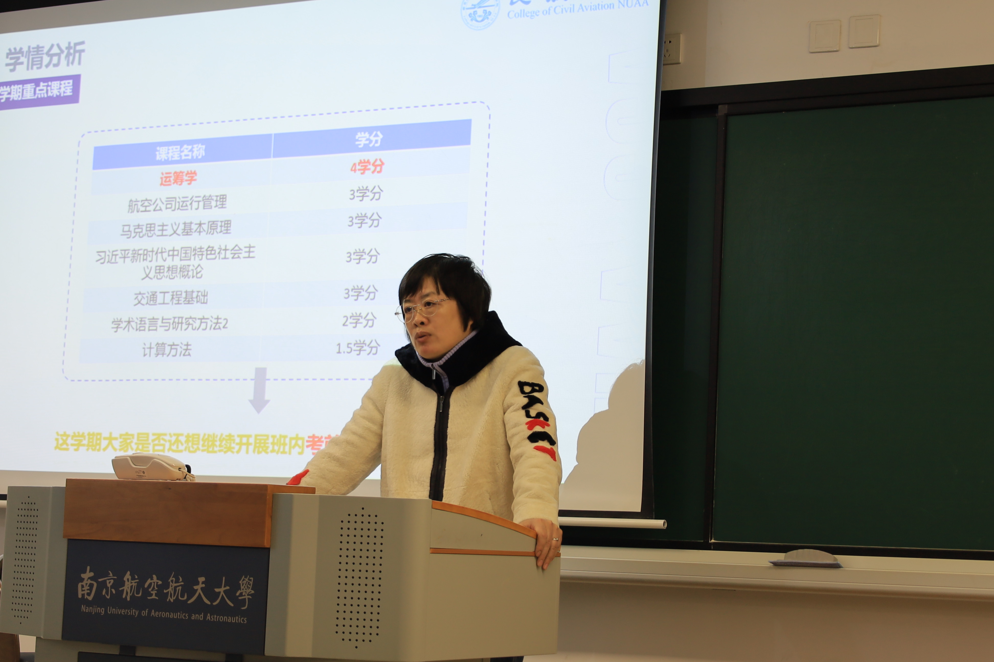 为正学风之帆、聚青春之力,以更清晰的航向奔赴新学期征程,3月19日,民航学院0724703班于天目湖校区巡天楼T1203教室召开“复盘·蓄力·笃行”主题班会。会议由班长陆妍羽主持,班主任姜雨到场指导。