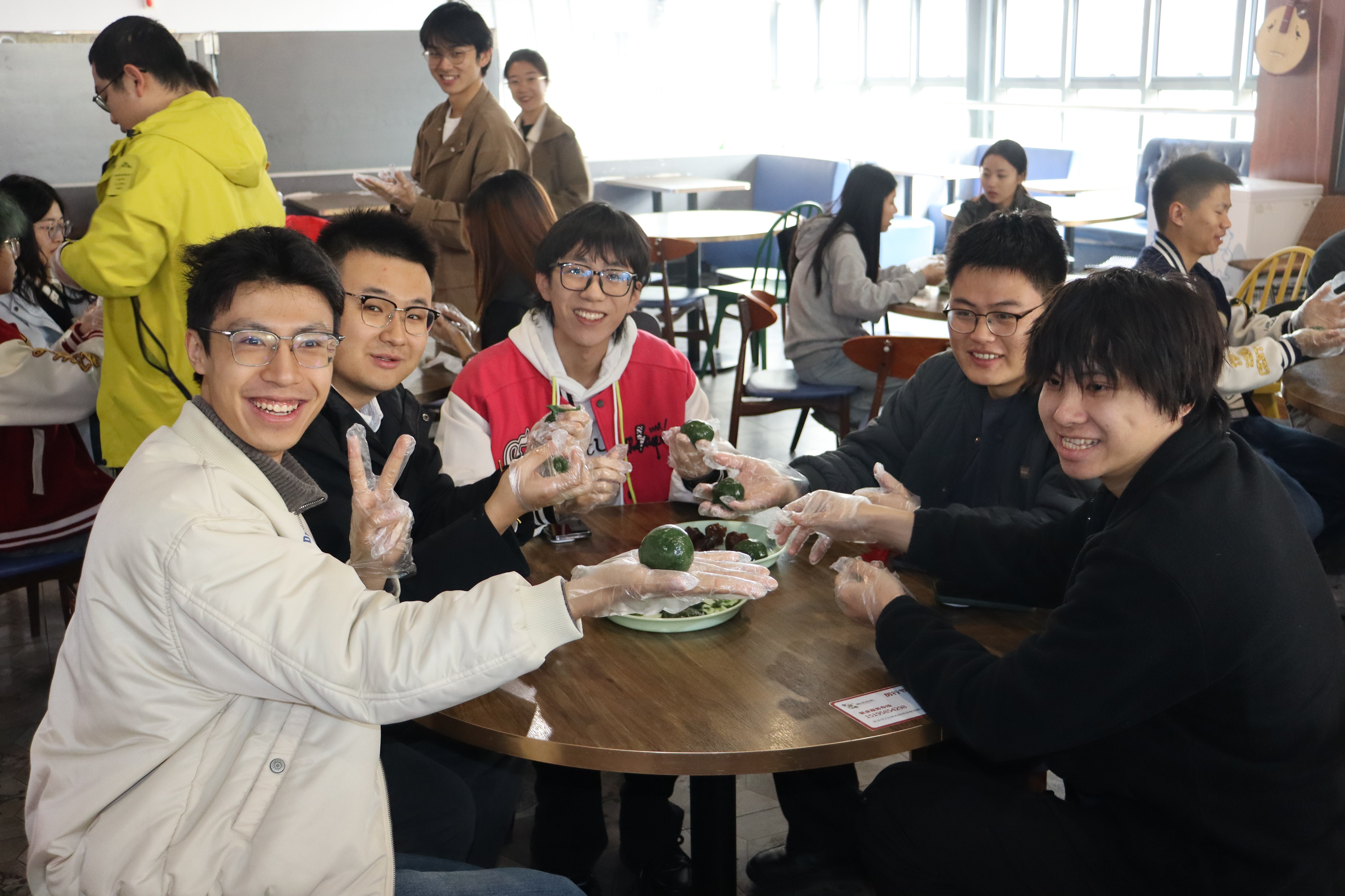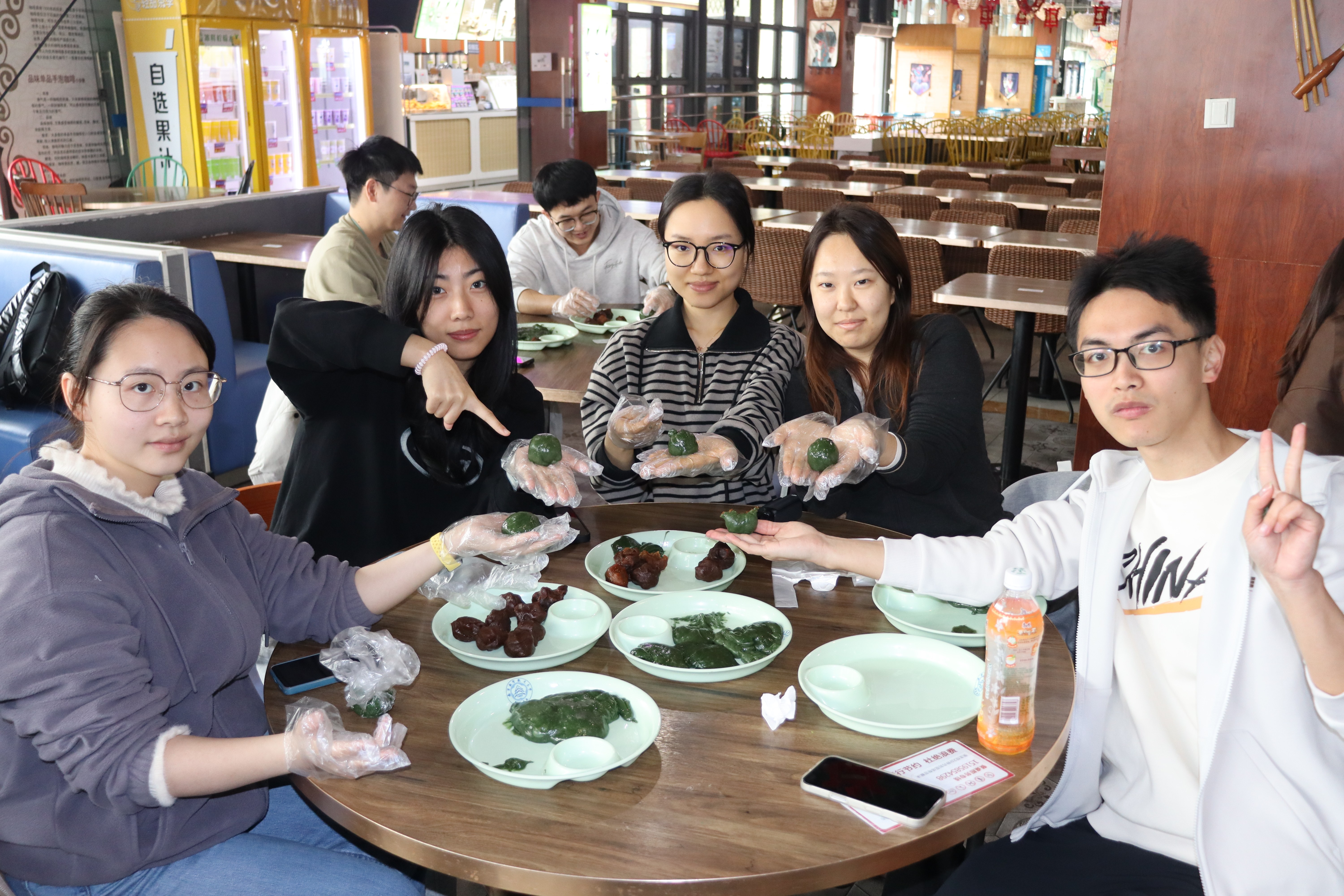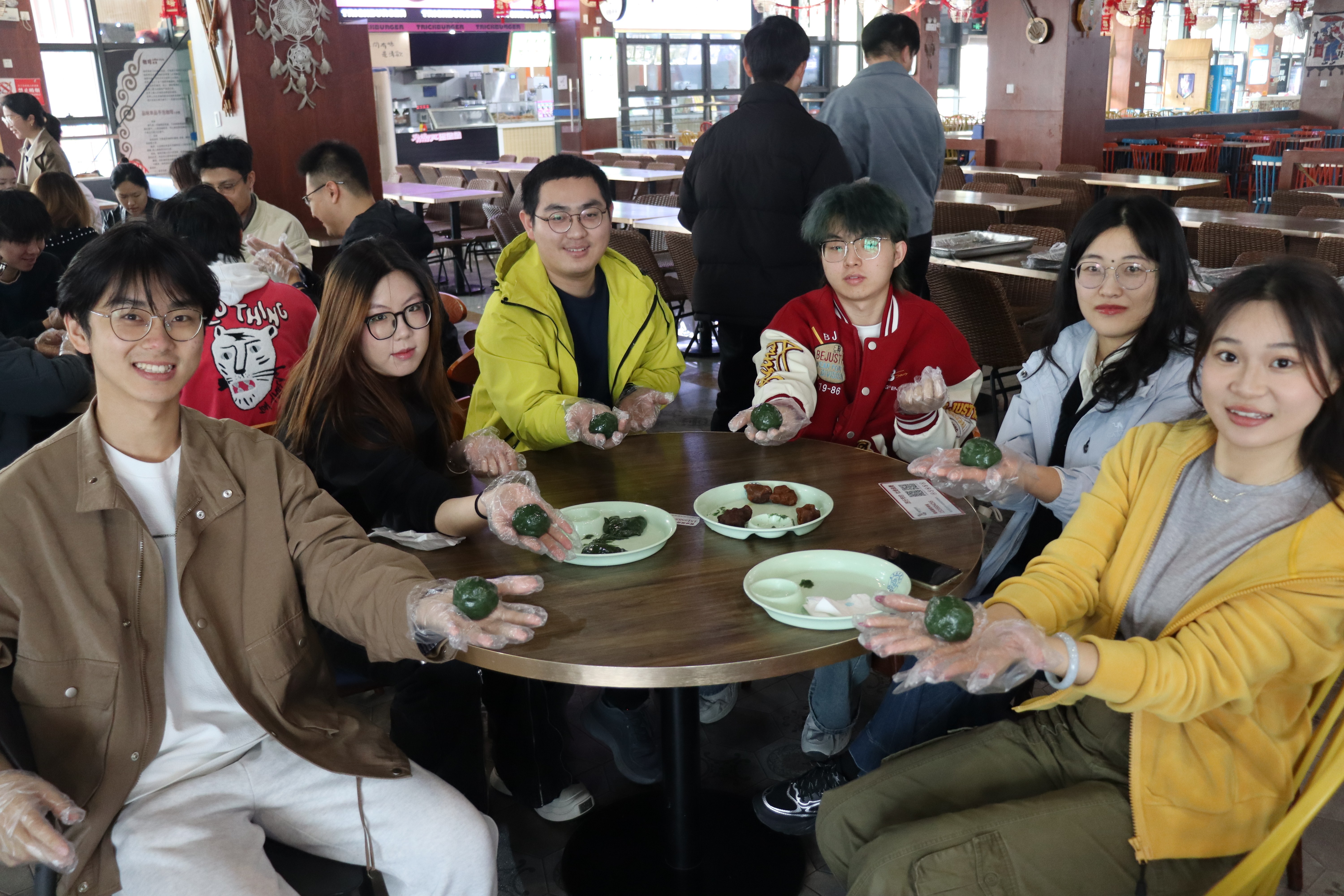 活动现场暖意融融,欢声笑语不断。同学们从揉面团、包馅料到塑形封口,一步步认真学习、动手实践,互相交流心得,现场氛围轻松又温馨。一个个圆润饱满、色泽青翠的青团在同学们手中逐渐成型。看着自己亲手制作的成果,同学们品尝着劳动换来的美味,也在品尝中体会到传统文化的深厚底蕴。