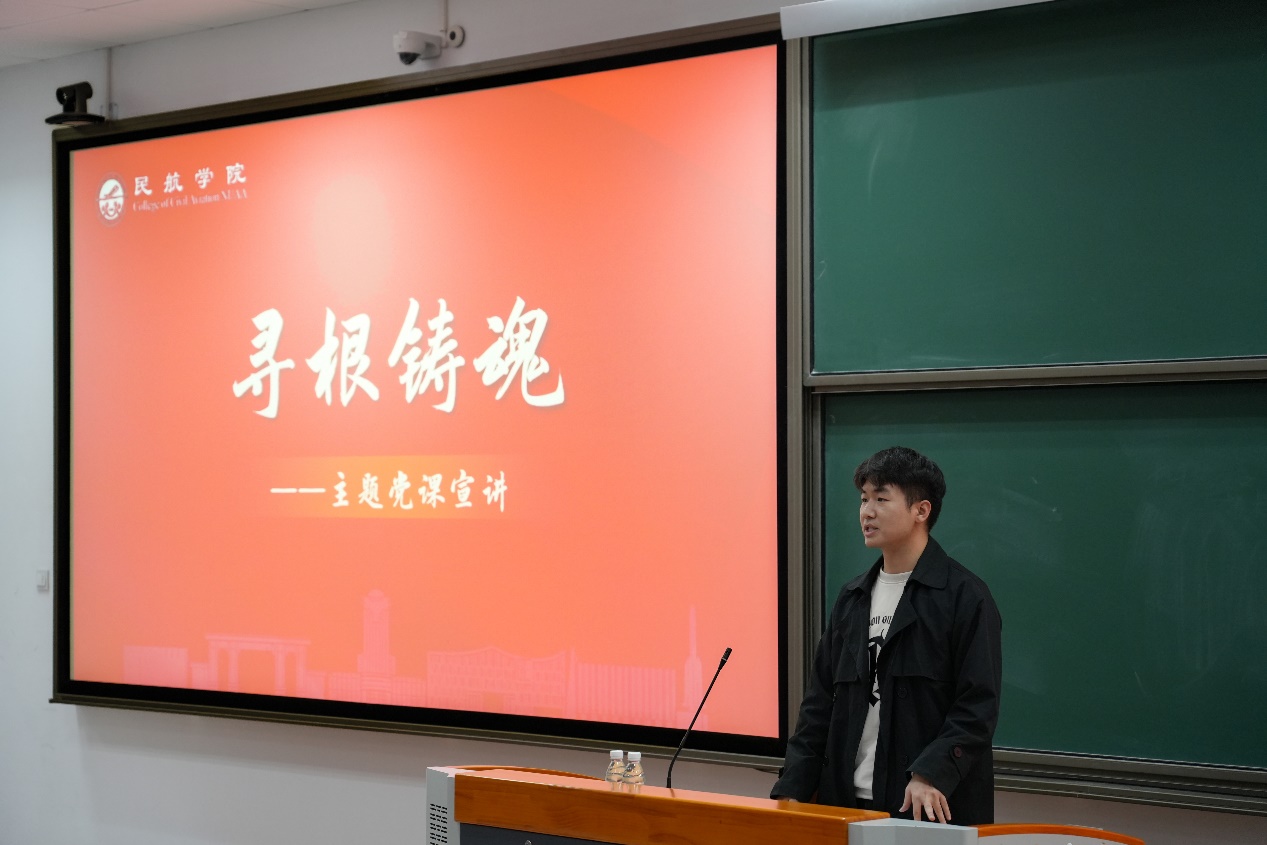 为加强学生党性修养,筑牢理想信念根基。10月30日,民航学院开展“寻根铸魂”主题党课宣讲活动。本次宣讲紧扣时代脉搏,聚焦党的作风建设、青年使命担当等核心议题,邀请三位优秀研究生党员代表分享,引导青年学子在学思践悟中坚定跟党走的信念,在青春赛道上书写报国华章。