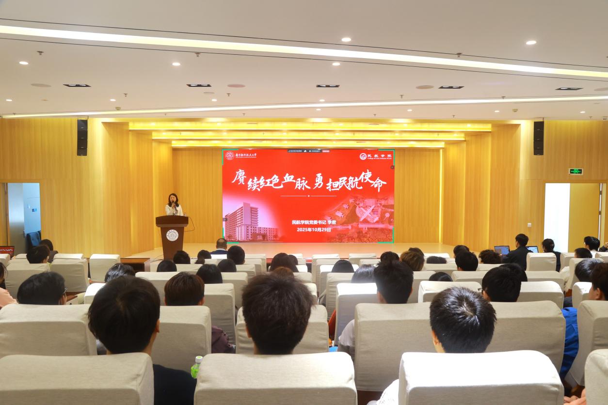 10月29日,民航学院党委书记李君以《赓续红色血脉 勇担民航使命》为题讲授党课。她由哪吒从魔童到英雄的蜕变引入,通过讲述党史、校史、民航史中鲜活的故事串联起红色基因的传承脉络,勉励同学们既要以“我命由我不由天”的志气铸就信仰之魂、以“若命运不公,就和它斗到底”的锐气勇担时代之责,以“你是谁,只有你自己说了算”的底气坚守初心使命,在党史、校史、民航史中汲取奋进力量,真正将个人理想融入交通强国民航新篇章建设,以“功成必定有我”的担当,努力成长为“有理想、敢担当、能吃苦、肯奋斗”的新时代民航青年。