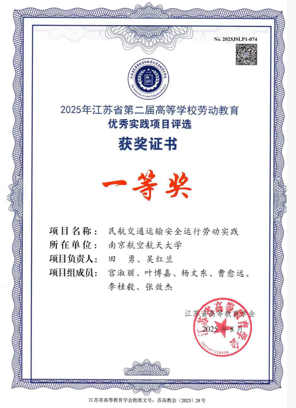 近日,江苏省第二届高等学校劳动教育优秀实践项目评选结果揭晓,民航学院“民航交通运输安全运行劳动实践”项目荣获一等奖。