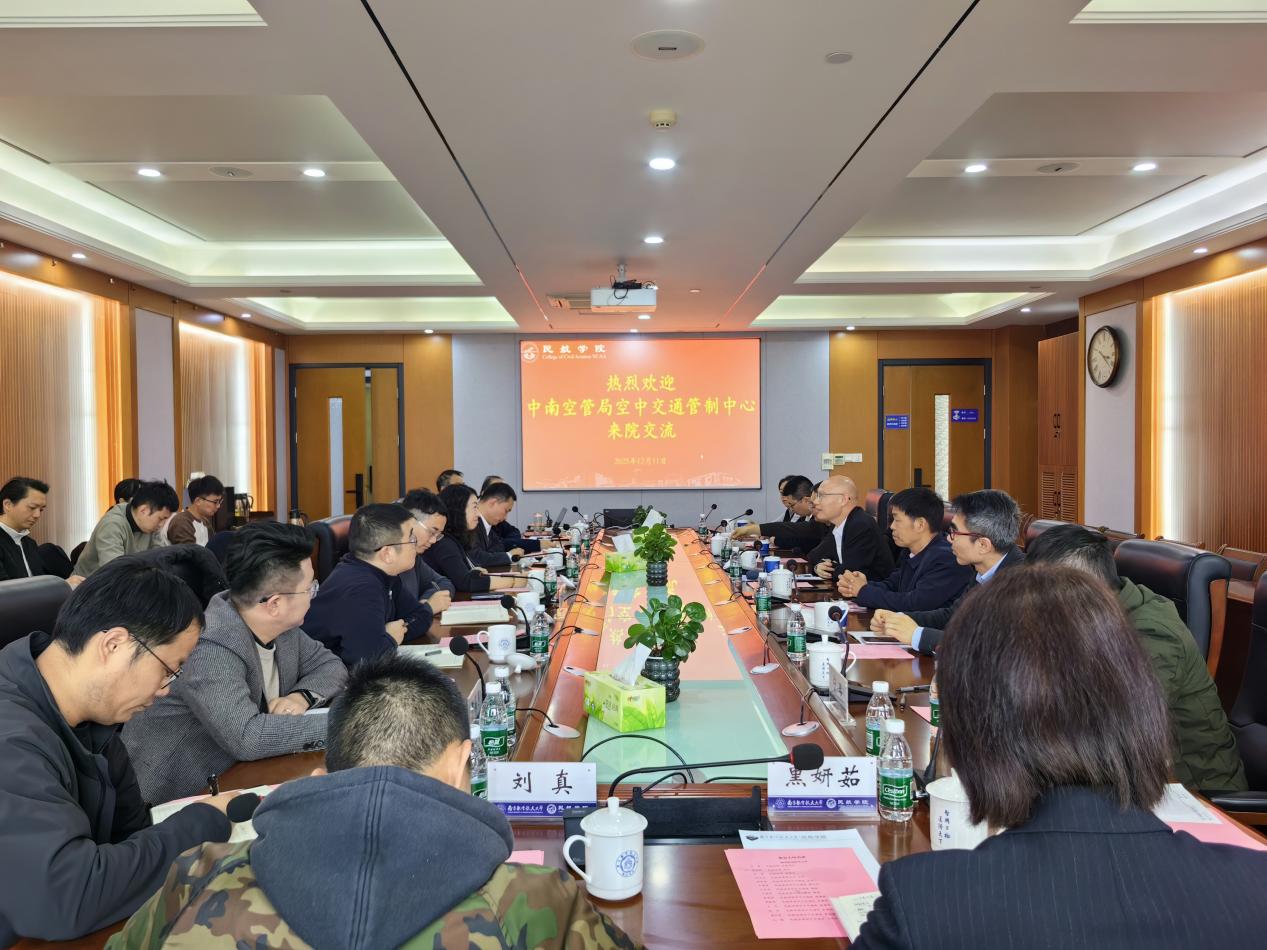 12月12日,民航中南空管局空中交通管制中心党委副书记(主持党务工作)郝永刚带队来院交流,南京莱斯信息技术股份有限公司空管事业部书记周禄华,民航中南空管局空中交通管制中心各处室代表,民航学院党委书记李君、院长张卓然、副院长田勇、教师代表参会。会议由张卓然主持。